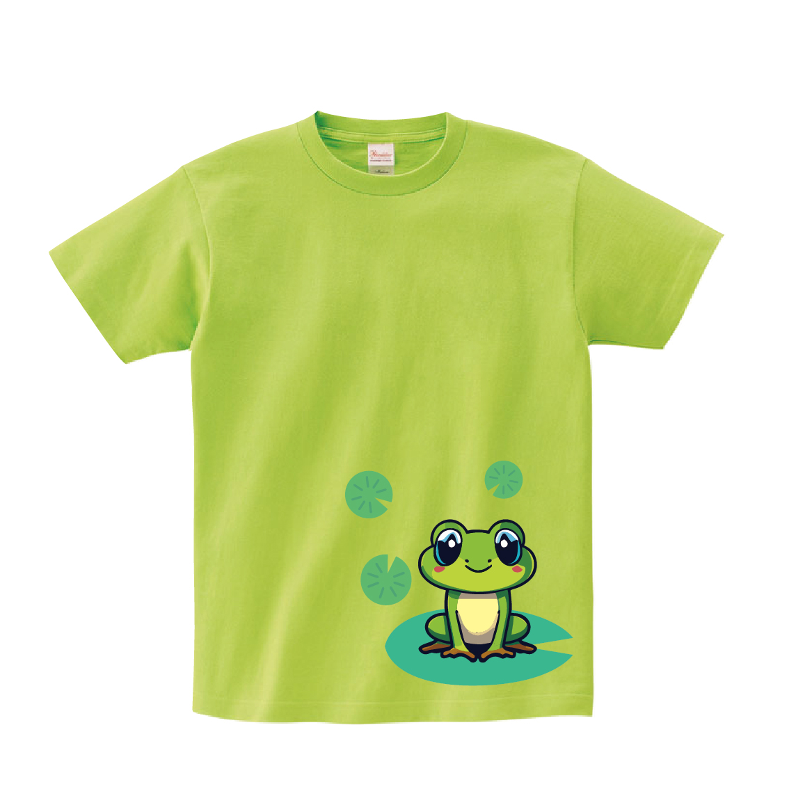 かわいい蓮の葉に乗ったかえるTシャツです。豊富なサイズでのご提供です。 ※画像ははめ込み画像となり、実際とは多少異なりますので予めご了承ください。 ※サイズ表をよくご確認の上ご購入ください。 ※受注生産となるため、返品、交換はご遠慮ください。