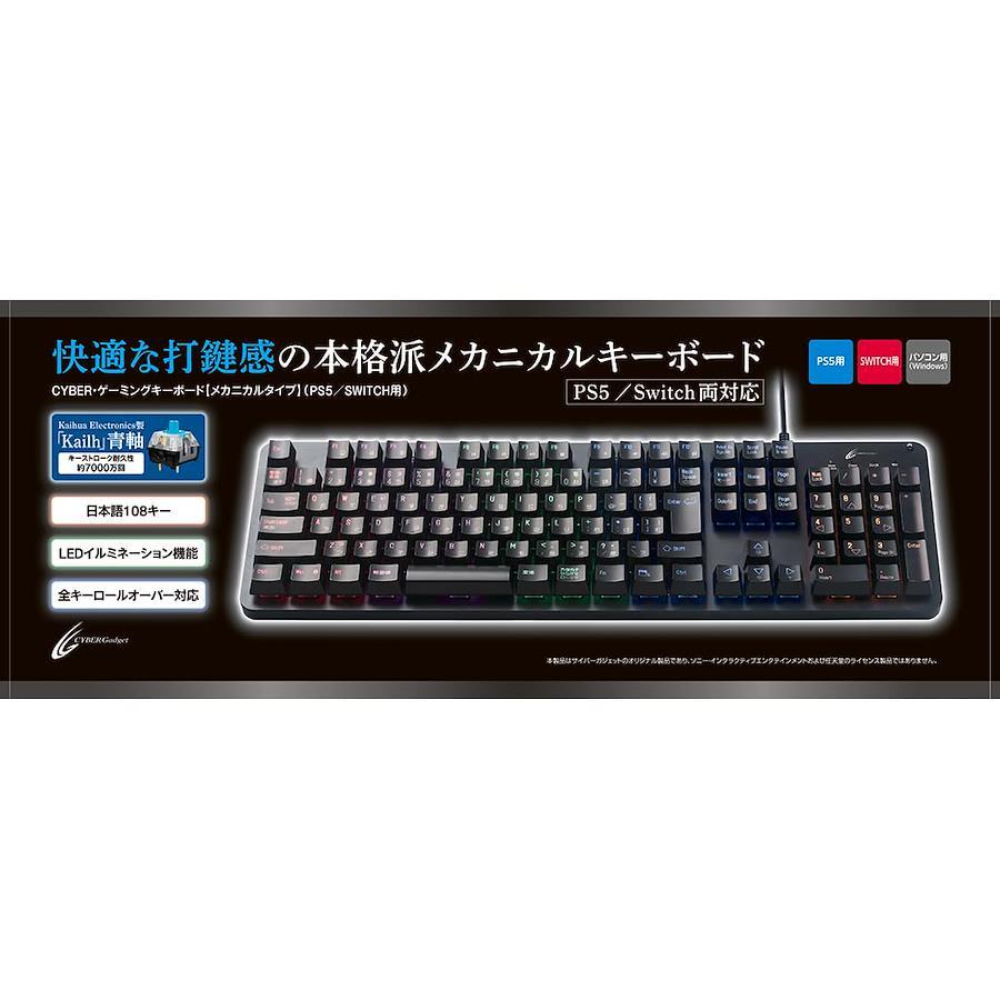 対応機種:PS5/PS4/Nintendo Switch/パソコン(対応OS:Windows10/11)セット内容:ゲーミングキーボード×1キータイプ:メカニカル式(青軸)本体サイズ:約 440×265×30mmケーブル長:約 1.2m本体重量:約 820g素材:ABSキー数:108(日本語キー)USBプラグ:USB A端子(4ピンオス)