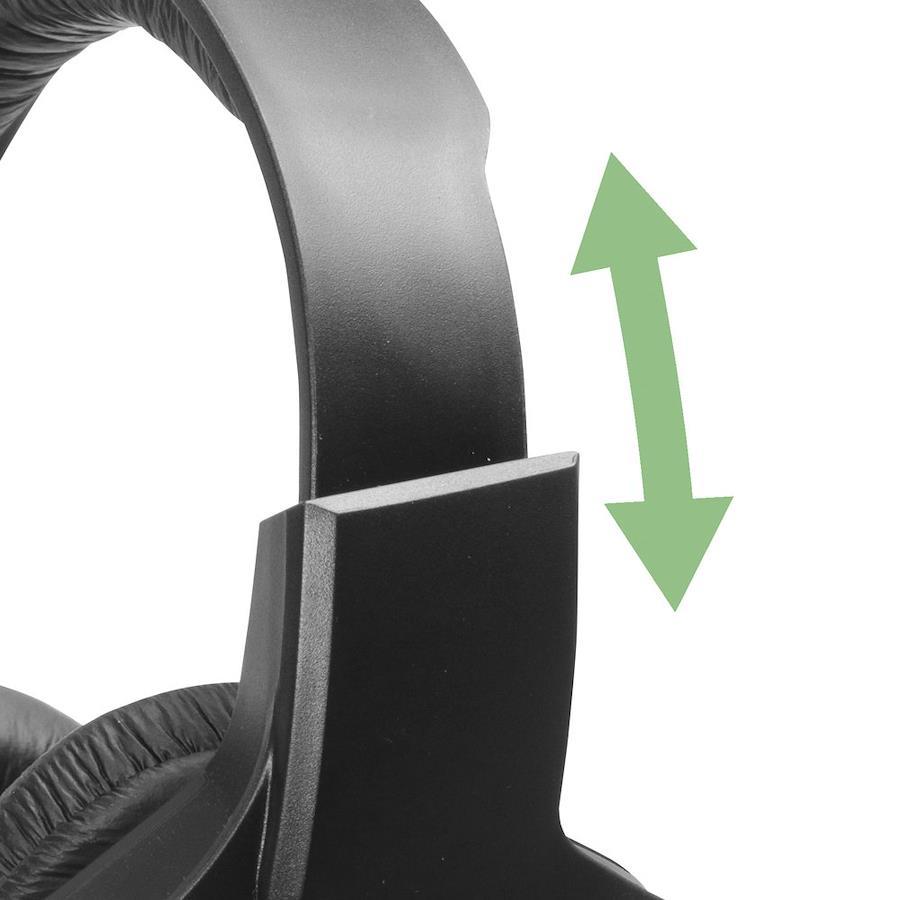 ヘッドバンドの頭頂部内側とイヤーパッドにはレザーレット (合皮) によるクッション材を使用しており、長時間のゲームプレイでも疲れにくく、快適に使用できます。