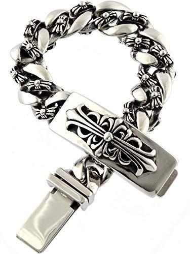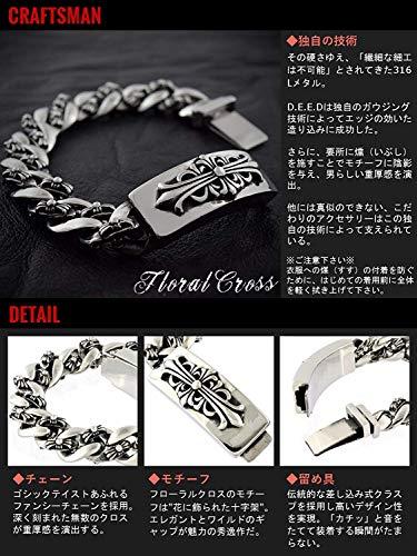 モチーフ:フローラルクロスチェーン:ファンシーチェーン 留め具:差し込み式クラスプ金属:316L(別称:サージカルステンレス)手首周り:18㎝/重さ:82g付属品:ベルベットジュエリーポーチ/保証書