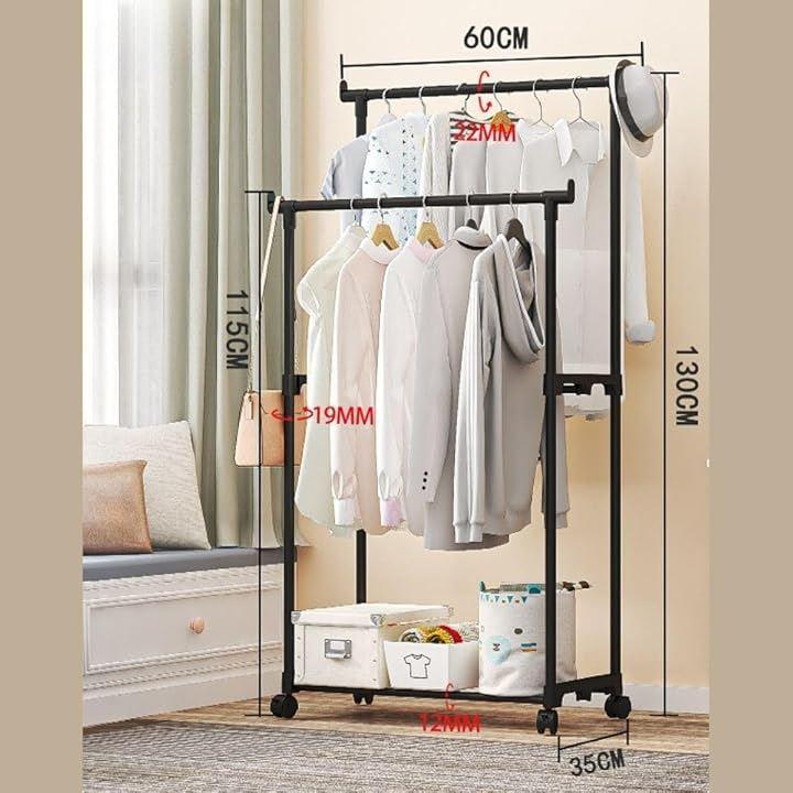 「省スペースにしっかり収納」幅約60cmのコンパクト設計ながら、上下2段構造で軽衣類を効率よく掛けられる実用性の高いハンガーラック。