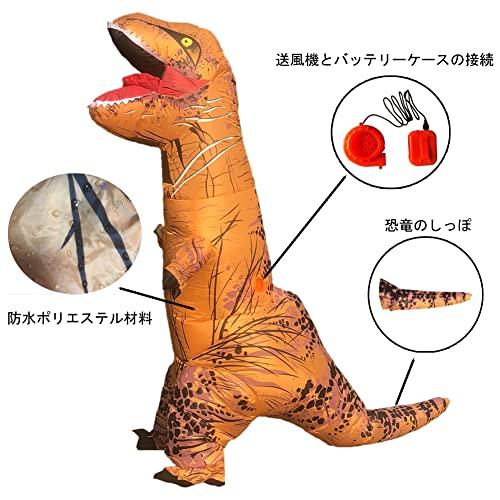 メイン素材: ポリエステル 編まれた 素材構成: 100% 素材構成比情報なし(ポリエステル) 【サイズ】この着ぐるみは大人向けで、身長:150cm~190cm、ウエスト:55cm~167cmの方に最適なサイズです。重量は0.62kgと非常に軽量のため、ハロウィンのパーティー会場まで持っていくことも可能です。 【セット内容】この恐竜の着ぐるみには、衣装、送風機、バッテリーボックス(バッテリーは含まれていません)、恐竜キーホルダー 1点が含まれています 【耐久性が抜群】このコスチュームはポリエステル生地を採用し、耐摩耗性及び耐久性が優れて、長時間使っても壊れません。首の部分に窓があるので、視界を十分に確保できます。また、歩きやすい仕様ですので、転倒や圧迫感などを心配する必要がありません。 【二つの給電方法】二種類の給電方式を採用 1) USBケーブルを使い、モバイルバッテリから送風機への給電 2) 付属のバッテリーボックスと接続して、乾電池による給電もOK。※乾電池は別売 【高実用性】みんなに大人気の恐竜のティラノサウルスのデザインなので、子供から大人まで、万人に受け入れられます。ハロウイン、仮装パーティーはもちろん、クリスマス、文化祭、学園祭、コスプレイベントなどで大活躍間違いなし。知人への誕生日プレゼントとしても喜ばれます。