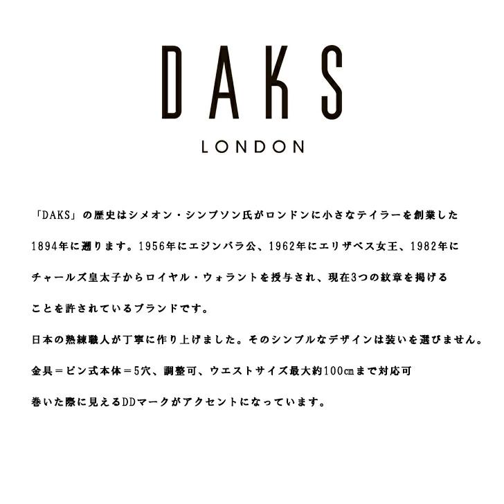 「DAKS」の歴史はシオメン・シンプソン氏がロンドンに小さなテイラーを創業した1894年に遡ります。1956年にエンジンバラ公、1962年にエリザベス女王、1982年にチャールズ皇太子からロイヤル・ウォラントを授与され、現在3つの紋章を掲げることを許されているブランドです。