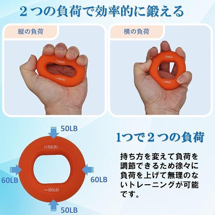 「二つの負荷」ドーナツ状のゴムは縦・横で負荷が変わるため握る位置を変えるだけでトレーニング強度を変えることが可能です。