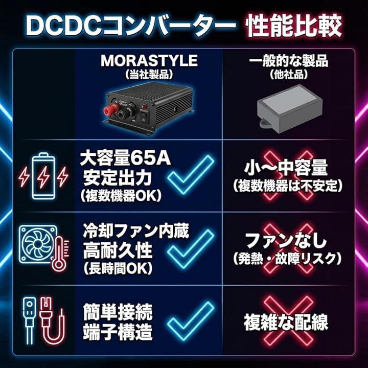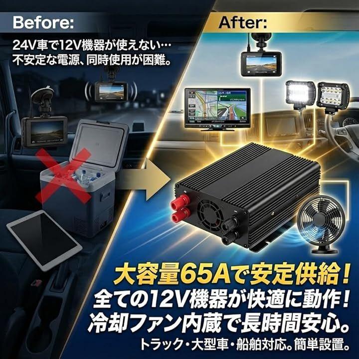 *「大容量65Aで安定した電圧供給」 24V車から13.8Vへ安定して電圧変換できるDCDCコンバーター。
