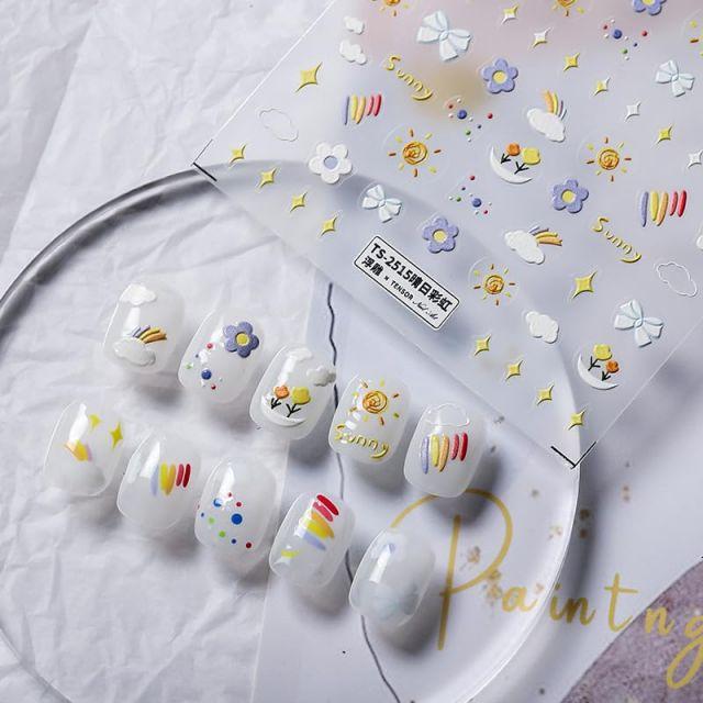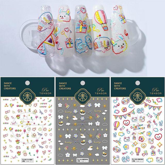 カラー:虹の微笑◆商品名:Dedyelレインボーパーティー5D押し花自己粘着ネイルアートステッカーかわいい子、バルーン星のネイルシール女の子の飾り楽しみ(3枚)