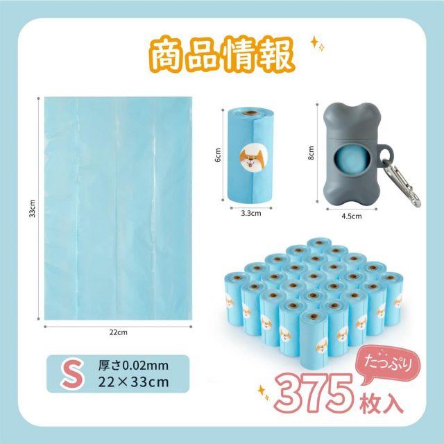 【商品情報】Sサイズ、22x33cm。25ロール/375枚入、(1ロールあたり15枚)。厚さ:0.02mm。犬うんちだけでなく、猫砂、オムツやサニタリー用品などの処分にも役立ちます。