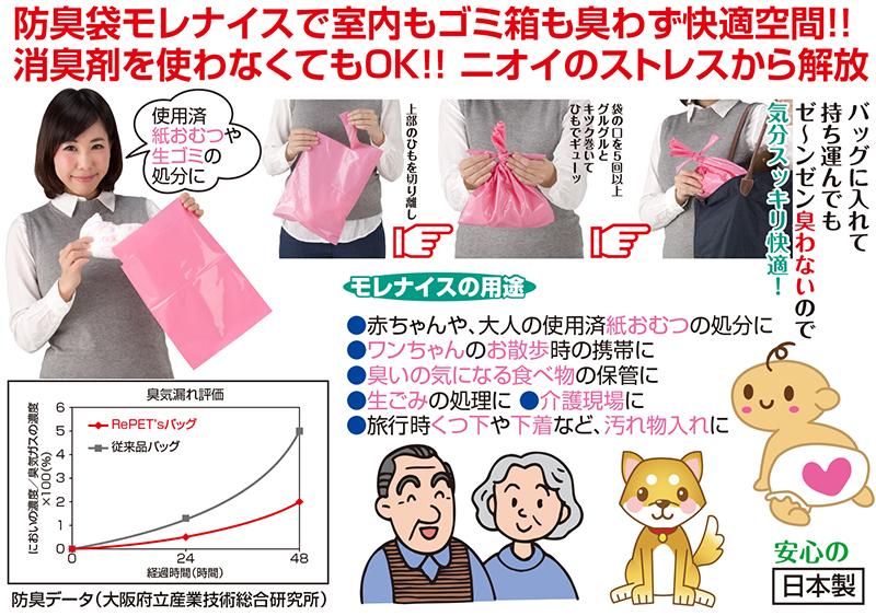 ★安心!ピンクの防臭袋モレナイス!*密閉するといやな臭いが遮断されます。*室内もゴミ箱も臭わず快適空間。・赤ちゃんや、大人の使用済み紙おむつの処分に・ワンちゃんのお散歩時に・ニオイの気になる食べ物の保管に・生ごみの処理に・介護現場に
