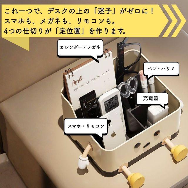 ●4つの仕切りが、バラバラな小物の『帰る場所』を作ります。●『あれどこだっけ?』の探し物時間を、これ一つでゼロにします。●リモコン迷子を卒業。家族みんなが使いやすいリビングの定位置。