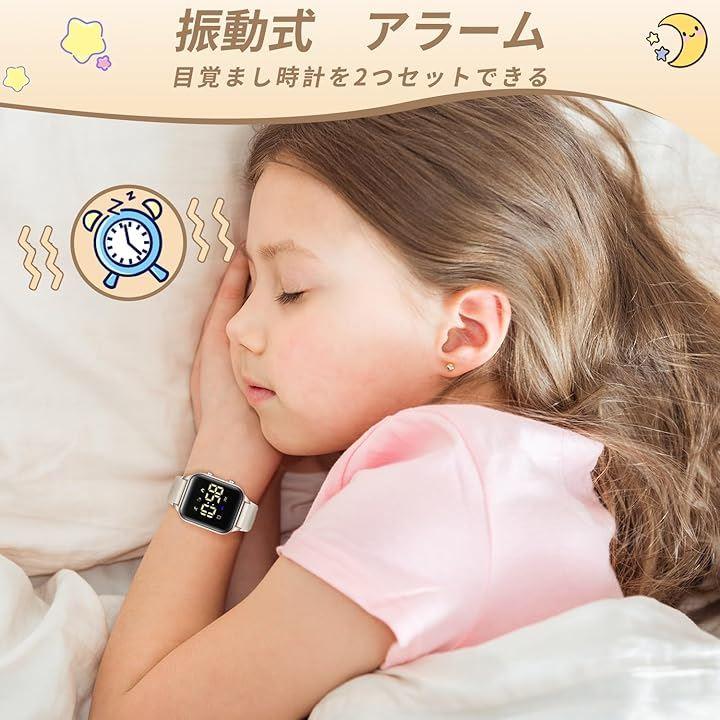 静音振動目覚まし時計:デジタル時計は2つの静音振動目覚まし時計を設置でき、子供の学習や休憩時間の管理を助けることができます。