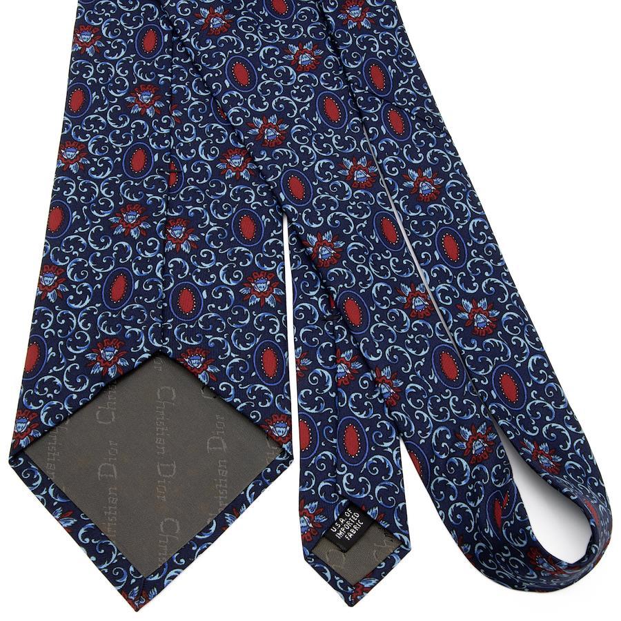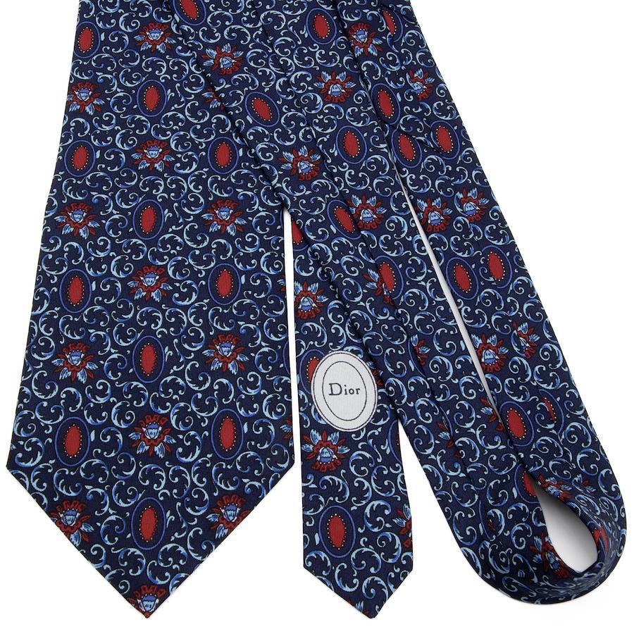 こちらは、エレガントな花柄が胸元を華やかに彩る、ディオールのネクタイでございます。