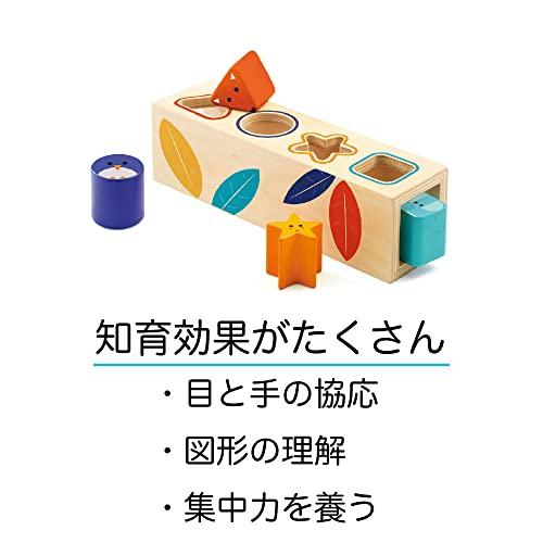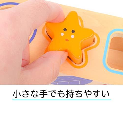 丸・三角・四角・星形の4つのブロックを同じ形の穴にはめましょう。