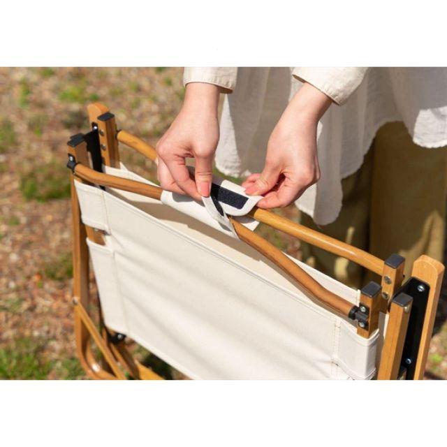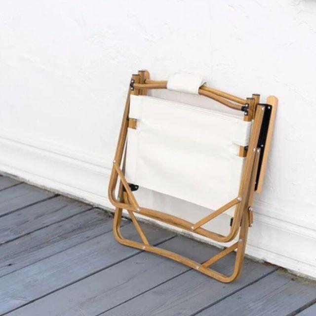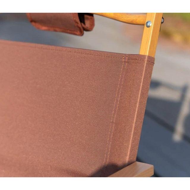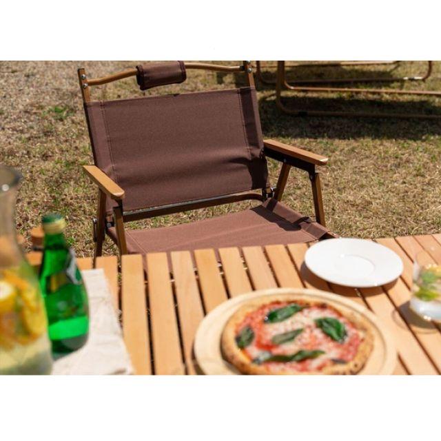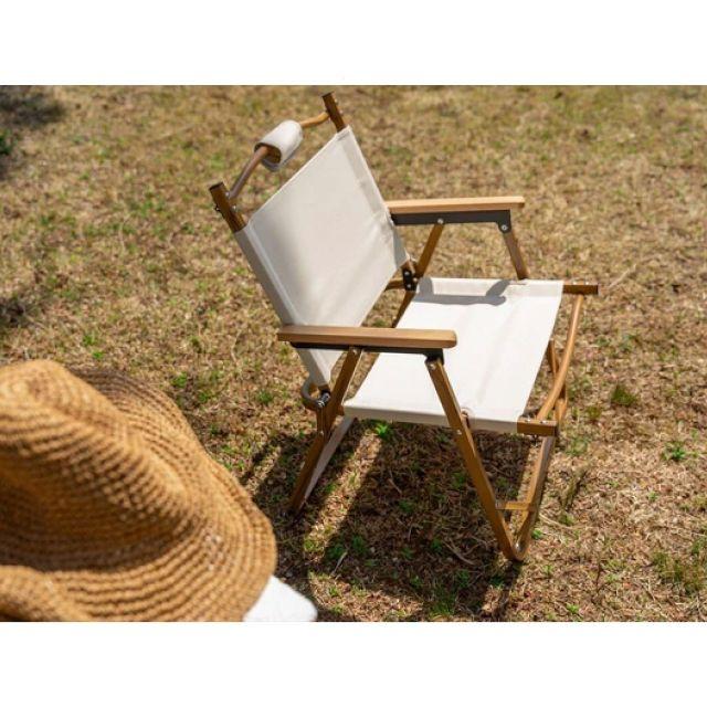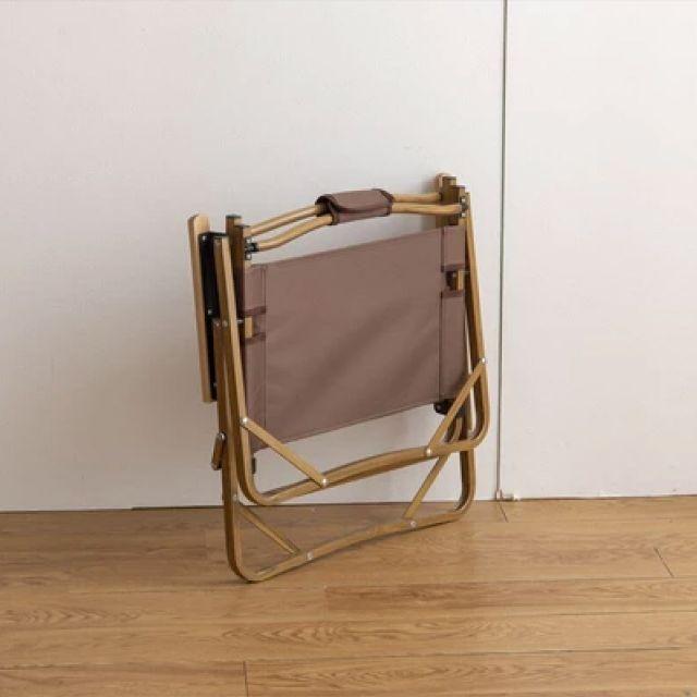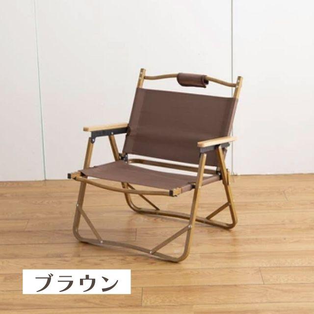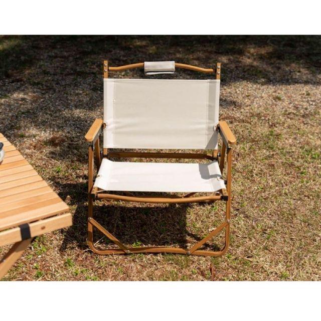 特徴■木目調のアルミフレームと天然木のアームレストがナチュラルな雰囲気を演出する、折りたたみアウトドアチェア。