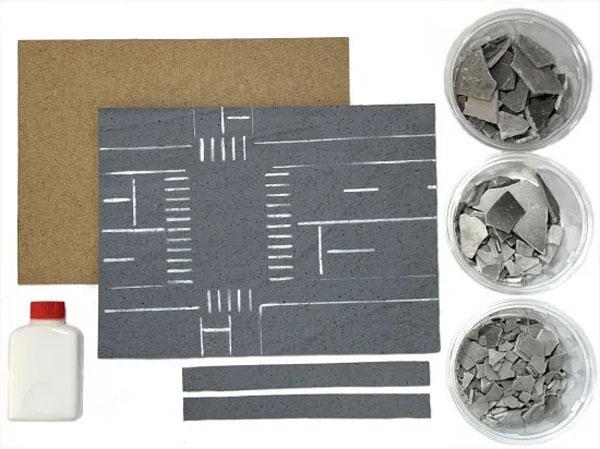 道路色調のグレー塗装済みです。割るだけで地面のひび割れが作れます。