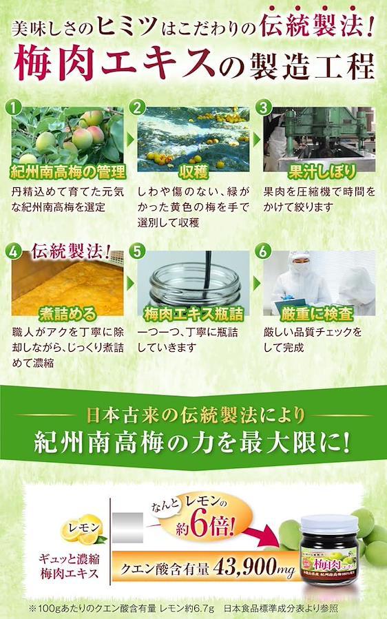 「日本古来の伝統製法」紀州南高梅の果汁を20時間以上じっくり煮詰めて成分を濃縮。