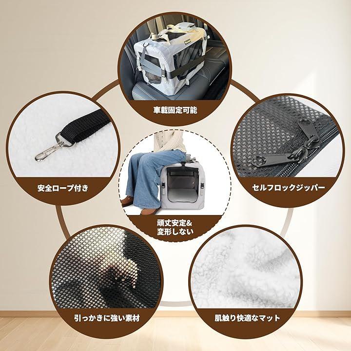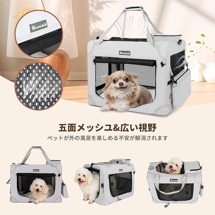 犬用キャリーは600Dオックスフォード布を使用し、上部・下部・側面は耐久性に優れたオックスフォード生地で作られています。