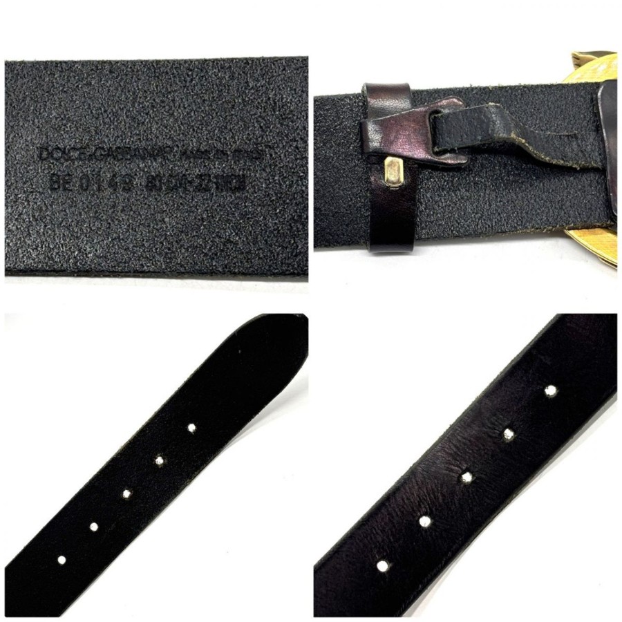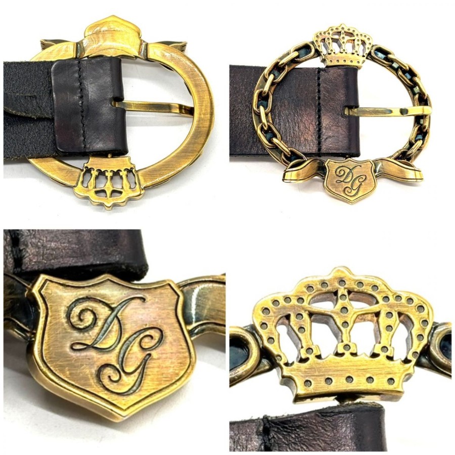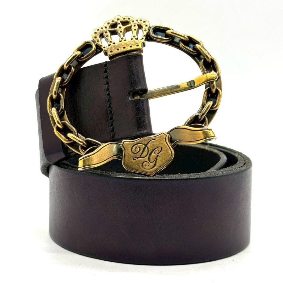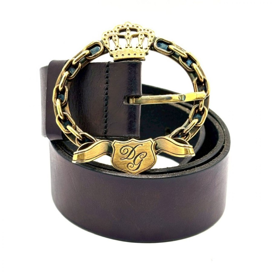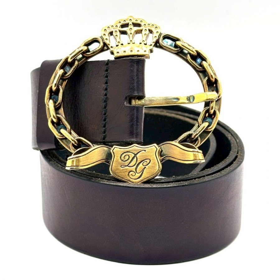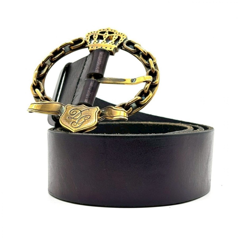 DOLCE&GABBANA Belt, Crown Design, Leather, Gold Buckle, Dark Brown, Size 80/32