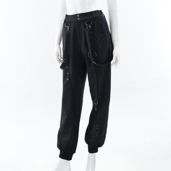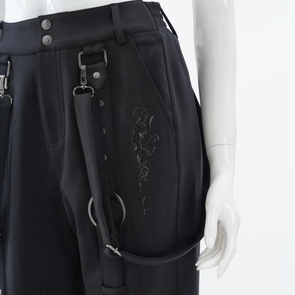 サイドの刺繍アクセントや抜け感のあるテープ遊びですっきり見える美シルエットに設計しました。ベルトやコードのパーツワーク、裾口の表情、刺繍アクセントがミリタリー×モードのムードを引き上げます。ショートジャケットやプルオーバーとの相性が良く、ストリートミックスからクリーンなモードまで幅広く活躍する一本