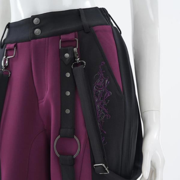 サイドの刺繍アクセントや抜け感のあるテープ遊びですっきり見える美シルエットに設計しました。ベルトやコードのパーツワーク、裾口の表情、刺繍アクセントがミリタリー×モードのムードを引き上げます。ショートジャケットやプルオーバーとの相性が良く、ストリートミックスからクリーンなモードまで幅広く活躍する一本