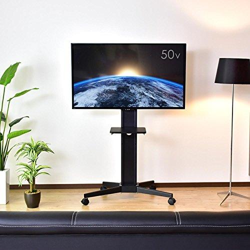 【壁寄せタイプ】ハイタイプでスマートな佇まいが空間を広々魅せる壁寄せテレビスタンド。壁に穴をあけないスタイリッシュスタイル。【薄型・大型テレビ対応】32~60インチのテレビに対応しており、ご自宅のリビングはもちろんオフィスでもお使いいただけるシンプル設計です。※40kg以下のテレビをお取り付けください【2段階調節ラック付】チューナーやDVDプレイヤーが置けるラック付き。2段階で高さ調節が可能です。また裏面には配線穴付きのため、コードを集めてスッキリ綺麗に整頓できます。【キャスター付】女性一人でも楽々に移動がかなうキャスター付き。前方2つのキャスターにはロック機能付きで固定も安心。【サイズ】本体:幅96×奥行76.5×高さ147(cm)梱包サイズ:142×34×13(cm) ◆材質:【本体】スチール【テレビ接続部分】スチール【支柱】中密度繊維板(MDF)【棚】中密度繊維板(MDF)【脚】プラスチック+スチール ◆重量:本体重量:約18kg 総重量:約20kg (梱包材等含む) ◆耐荷重:本体:約40kg 棚:約5kg ※生産時期により仕様が異なる場合がございます。あらかじめご了承ください。