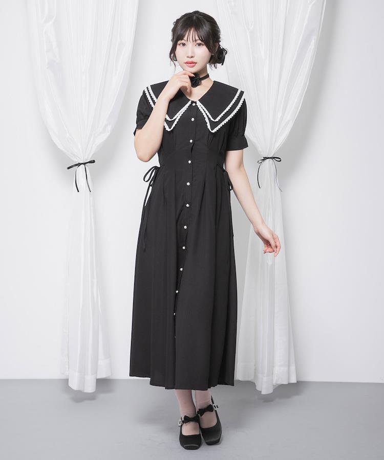 襟の縁にあしらったスカラップレースは、クラシカルなムードを演出します。