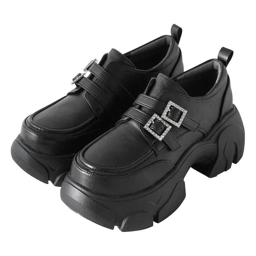 厚底とまあるいトゥやきらきらビジューバックルの