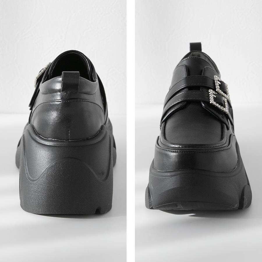 厚底と2連ビジューバックルの甘辛パンプスのご紹介★