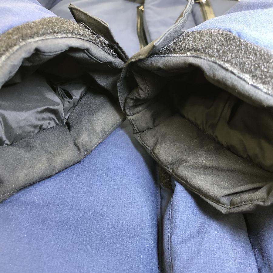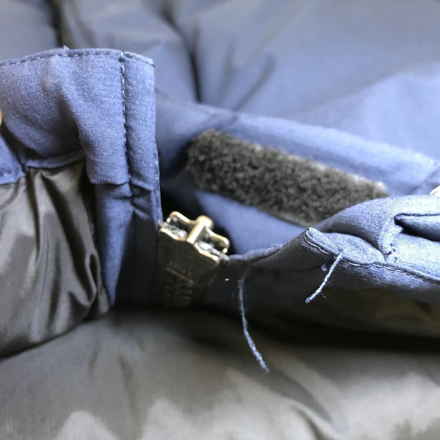 袖口の裏側に擦れ汚れと裾ファスナー付近に糸ほつれが見られます。