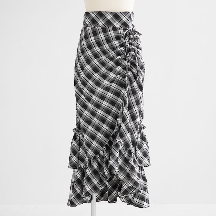 ドロストデザインのアシメフリルマーメイドスカートのご紹介。