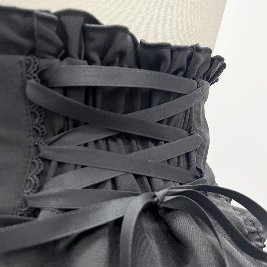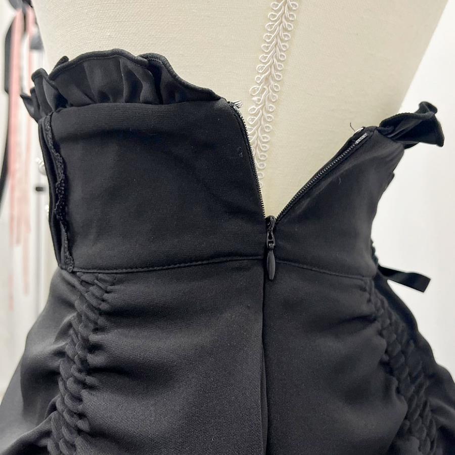 ドロストのギャザーデザインがポイントのフレアスカート【デザイン】ドロストのギャザーがポイントのかわいすぎるフレアスカート前も後ろもドロストのデザインになっています。リボンが縫い付け仕様になっているのもポイントです。ウエスト部分にはパールの丸ボタンがついています。【素材】しっかりとした素材になっています。本体に裏地付き、脇ポケット付きです。脇ファスナー、後ウエストゴム付きです。【コーディネート】地雷系や闇コーデにオススメのお友達との双子コーデとしても映える1着です。《透け感》なし 《生地の厚さ》普通 《裏地》あり 《伸縮性》ややあり《生産国》中国