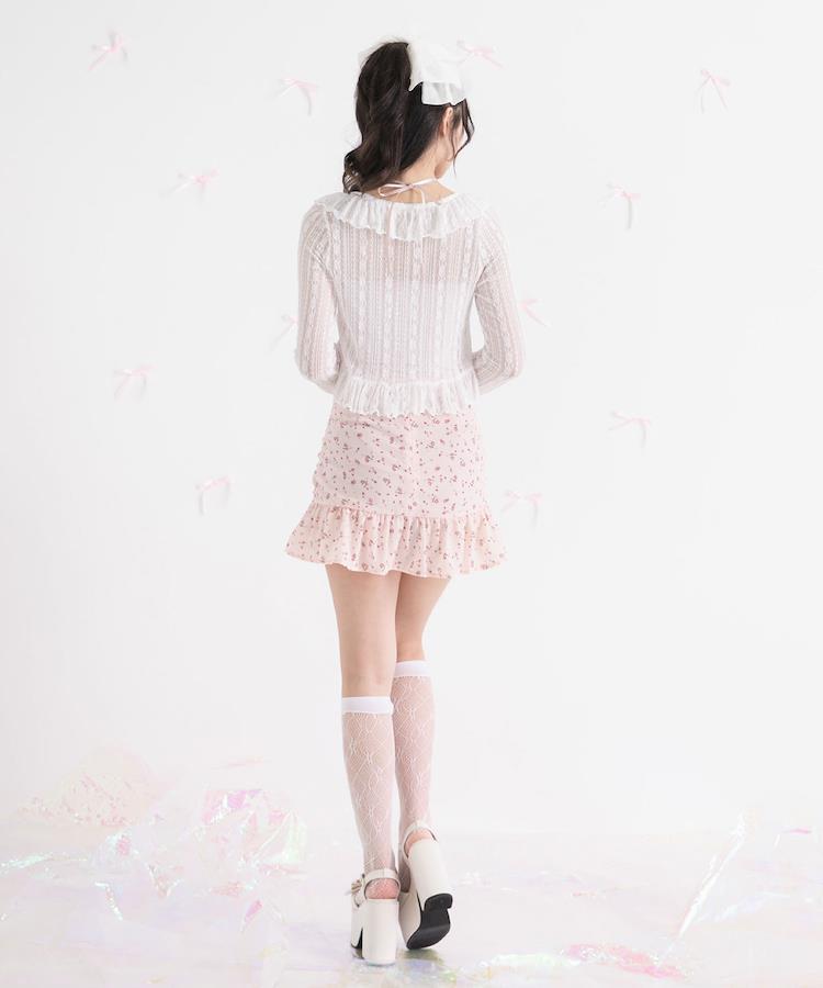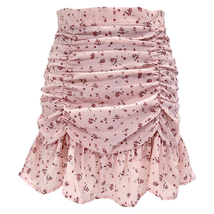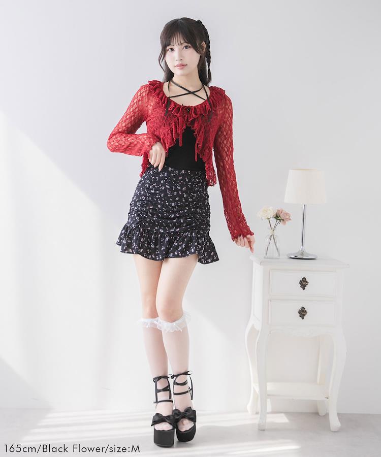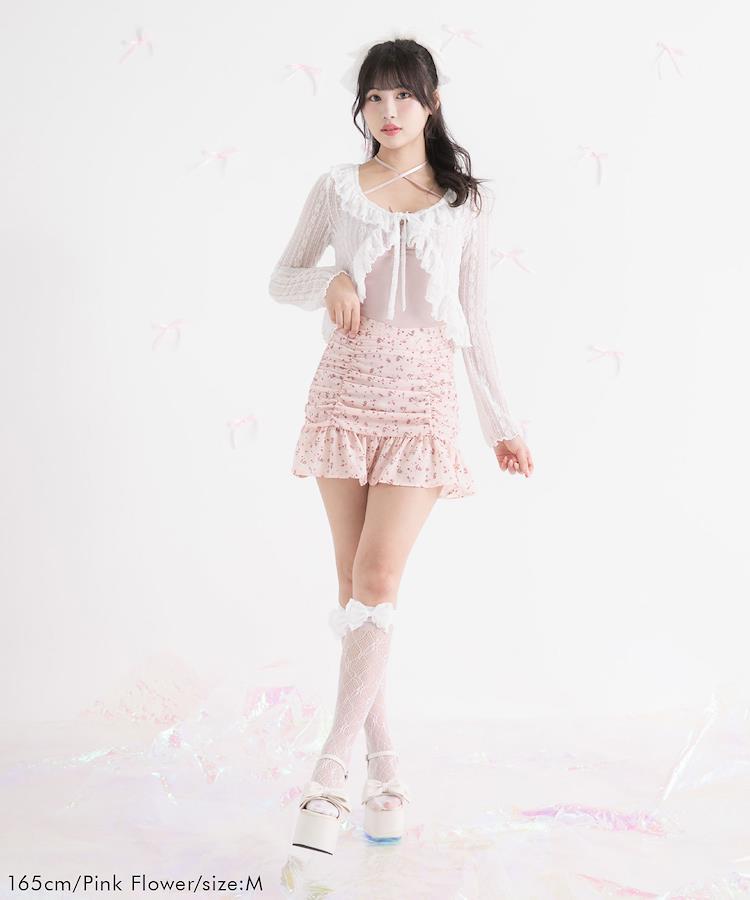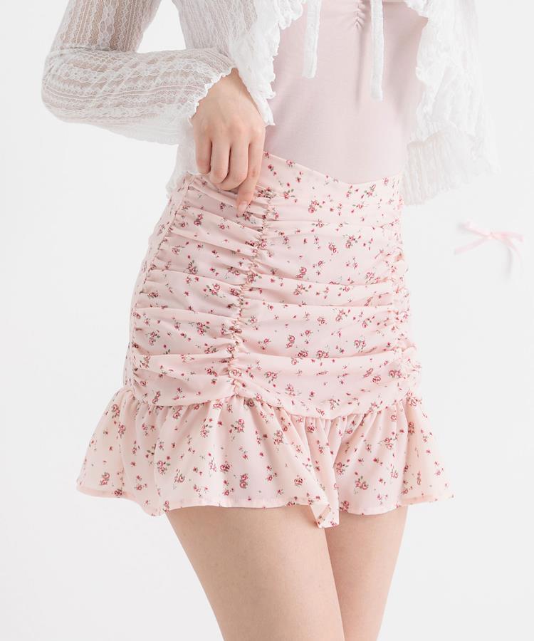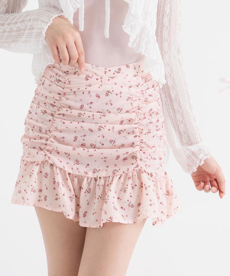トレンドのギャザーをたっぷりとあしらったデザインミニスカートのご紹介。【デザイン】女の子らしい台形シルエットやヘムフリルで甘さもプラス。小花柄が儚げで女の子らしい印象に◎後ろファスナーを開けて着脱する仕様になっています。ゴムは付いておりませんが、ヒップラインのシルエットが綺麗に見せてくれます。【素材】生地は薄めで、通気性が良くサラッとした春夏にぴったりな素材です。裏地付きで、インナーパンツ仕様になっています。