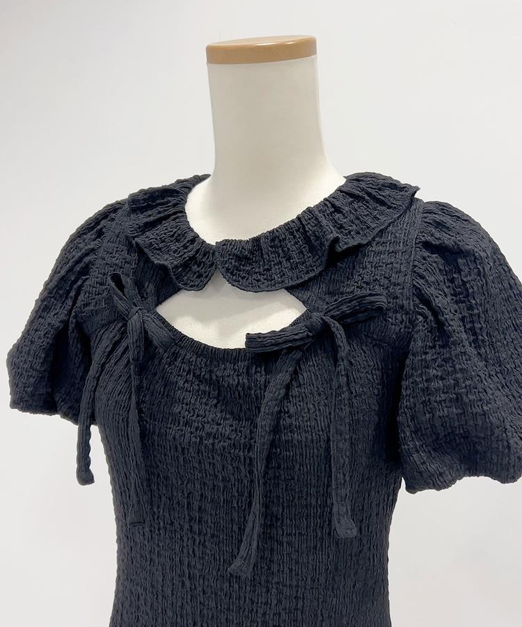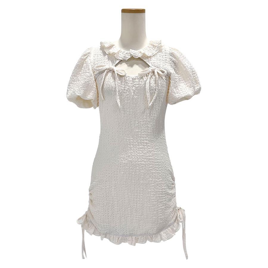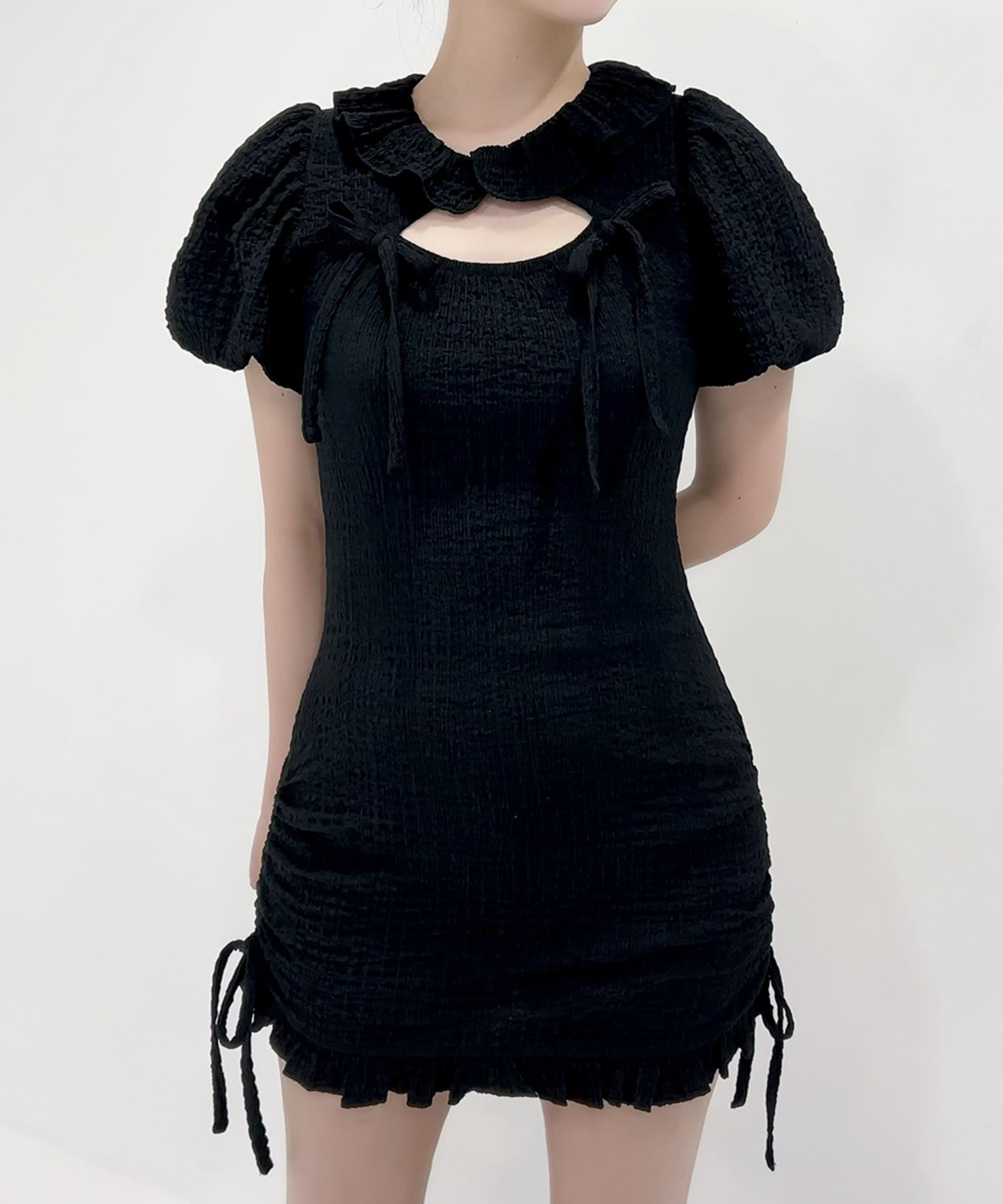 トレンドのドロスト×バルーンスリーブデザインのミニワンピースのご紹介。