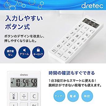 通常1-5営業日で発送:dretec(ドリテック) 時計付電卓タイマー 計算機 マグネット 最大セット時間99時間99分99秒 ホワイト