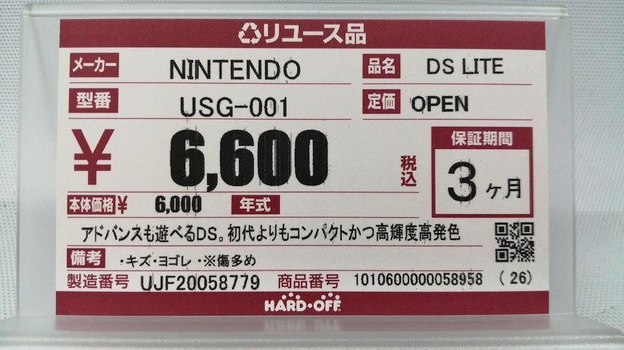DS LITE USG-001 NINTENDO ニンテンドウーDS Lite NINTENDOUSG-001DS LITE■画像参照