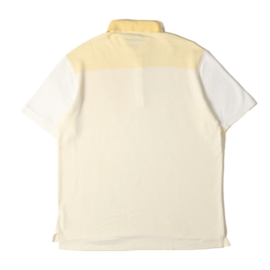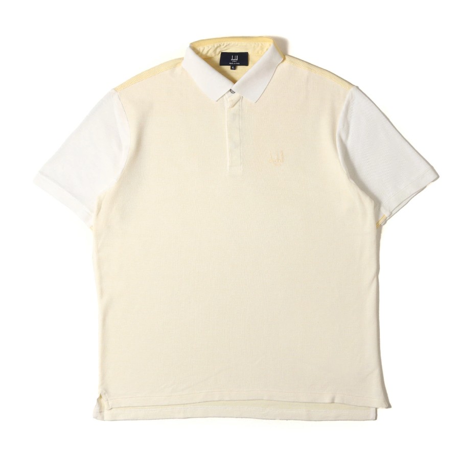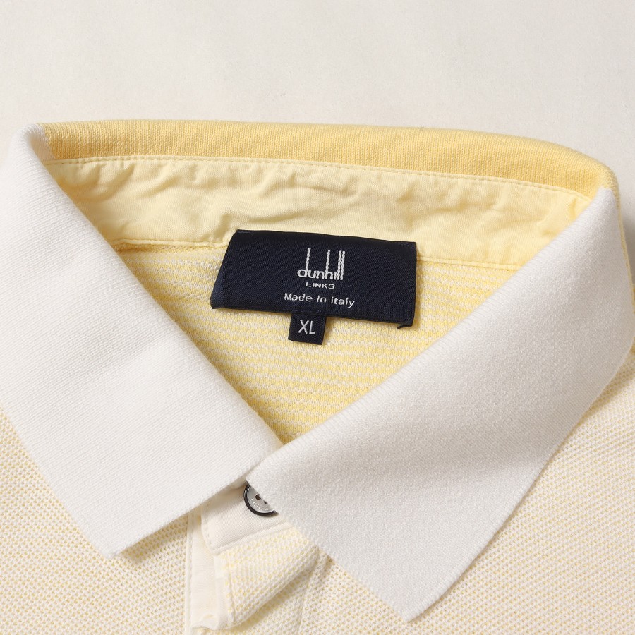 Dunhill polo shirt, pale yellow and white, size XL | Crazy pattern pique polo shirt / LINKS MADE IN ITALY | Short-sleeved top [Men's] [Used] [Excellent condition] [K4780]