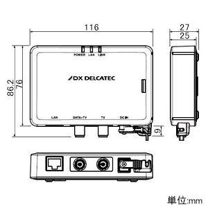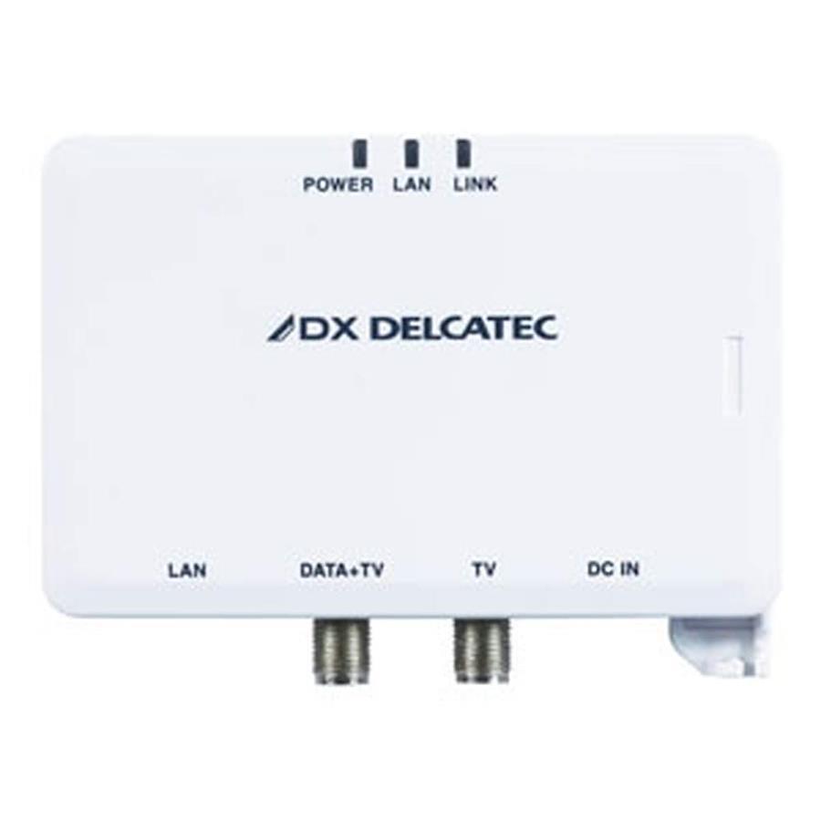 3営業日以内に発送≪新品未開封品≫:●メーカー:DXアンテナ●型番:ECG12T1●商品名:《DXデルカテック》 高速同軸線モデム●子機●自動登録タイプ●2K・4K・8K対応●屋内用●登録機能:自動●子機間通信:不可●推奨接続台数:親機1台に対し、子機10台(最大30台まで)●電源電圧:専用ACアダプター(UV305-1205-JDXA-0009)・入力:AC100V 50/60Hz・出力:DC12V・0.5A・コード長(m):約1.8●消費電力(W):4.0●使用温度範囲(℃):0~+40●寸法(mm):高さ76×幅116×奥行25(突起部を除く)●質量(g):130(ACアダプターを除く)●ECOマーク表示品●RoHS対応●付属品:・専用ACアダプター(UV305-1205-JDXA-0009)×1個・壁取付用ネジ(3.1×16mm)×2本・MACアドレスシール×3枚(うち1枚貼付け済)
