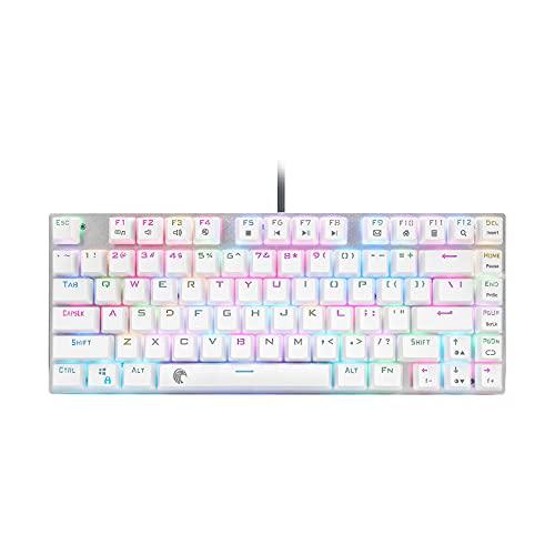 Eastern Times Technology Gaming Keyboard, Red Switches, 81 Keys, Anti-Ghost Keys, Mechanical Gaming Keyboard, RGB Luminous LED Backlight, USB Wired Fast Response, Waterproof Gaming Computer Keyboard (Red Switches- Black) (US layout not guaranteed) 81-Key Mechanical Gaming Keyboard with Red Switch: Each key is controlled by a high quality independent red switch, and there is no interference even when multiple keys are pressed simultaneously.Fast response and perfect for gaming, typing, programming, etc. RGB Color Changing LED Backlight: Throw yourself into the game world while enjoying the beautiful shining lights.You can find the keys even in the dark, and leads to committing to the battle and victory.By using the FN + PGDN keys, 10 different backlight modes and breathing modes can be switched over easily to make the atmosphere of a variety of different games, including First Person Shooters games like Crossfire and Call of Duty, Real-time Strategy games like League of Legends, etcYou can also turn off the backlight.The brightness level is adjustable. Using Red Switch: Linear stroke typing with a smooth and light key touch and no click feeling.The keystroke response is very light, and the typing sound is quiet.It has a Spring Pressure of 2.1±0.05 oz (60 ± 1.5g) and a keystroke of 0.08 ± 0.02 inches (2.0 ± 0.6 mm). Because the keys are light and there is no typing sound, it is difficult for even a microphone to pick up the sound.Many gamers use the red switch.(In the case a key does not respond, you can easily remove and replace the red switch on your own using the switch puller.) ? Gift: spare red switches x 5, keycap puller x 1, switch puller x 1 Ergonomic Design: Strong design to withstand liquid, dust and dirt, so you can use it for a long time without worrying while you work or play games.It has a waterproof function and a drain on the reverse side so you don’t have to worry about accidental spills.The 2-step angle adjustable legs keeps the keyboard in the ideal position.Your hands will not fatigue even after long hours of use. Excellent Durability: Made of high quality shock-resistant anti-corrosion ABS material that can withstand 50 million key strokes, and the laser print is fade resistant and can be used for a long time.70.9 inch (1.8 m) long cable and gold-plated terminals for fast signal transmission.The keycaps can be removed for easy cleaning.-Please contact us in the rare event of any problems arising from manufacturing issues. (#lf)(#lf)(#lf)商品購入前に、ストア紹介ページをご確認ください。