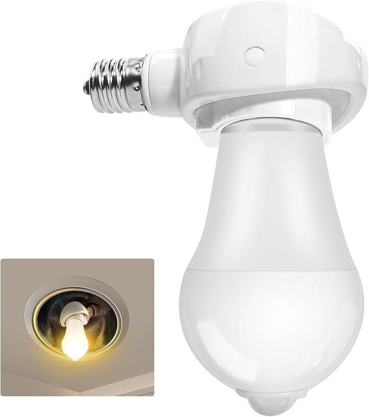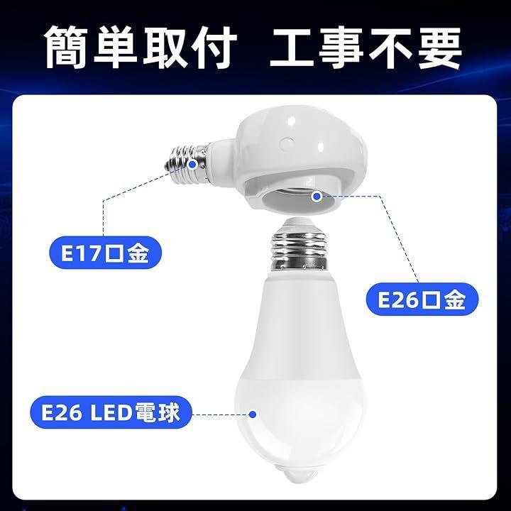 1、LED電球 E26口金 人感センサー 電球 60W形相当 検知角度:約120°, 検知範囲:直径約5mx高さ約3m.