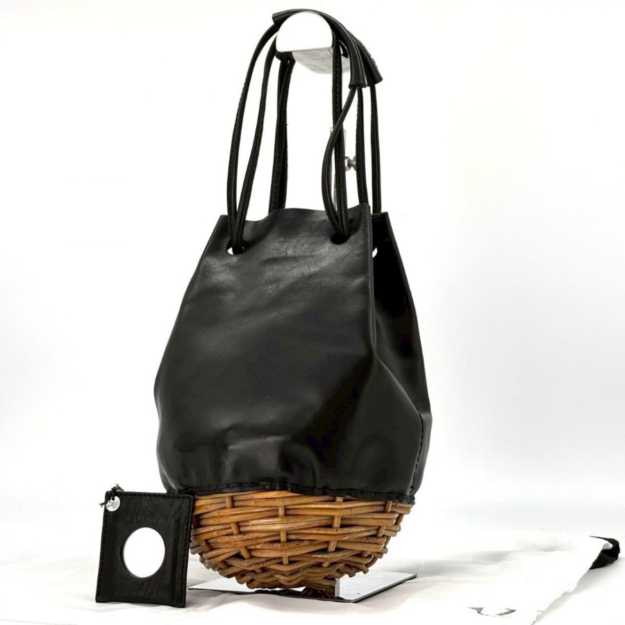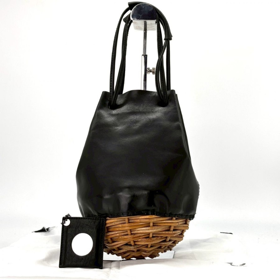ebagos Basket Bag, Oil-Tipped Shoulder Bag, Leather and Rattan Base, 2-Way Shoulder Bag, Complete with Accessories, Black