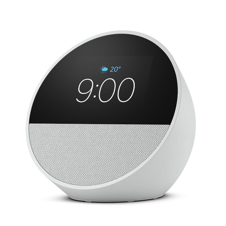 Echo Spot (2024) - Smart Alarm Clock with Alexa, Vibrant Sound | Glacier White