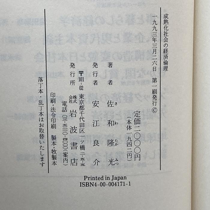 商品名:成熟化社会の経済倫理 (シリーズ現代の経済) 岩波書店 佐和 隆光