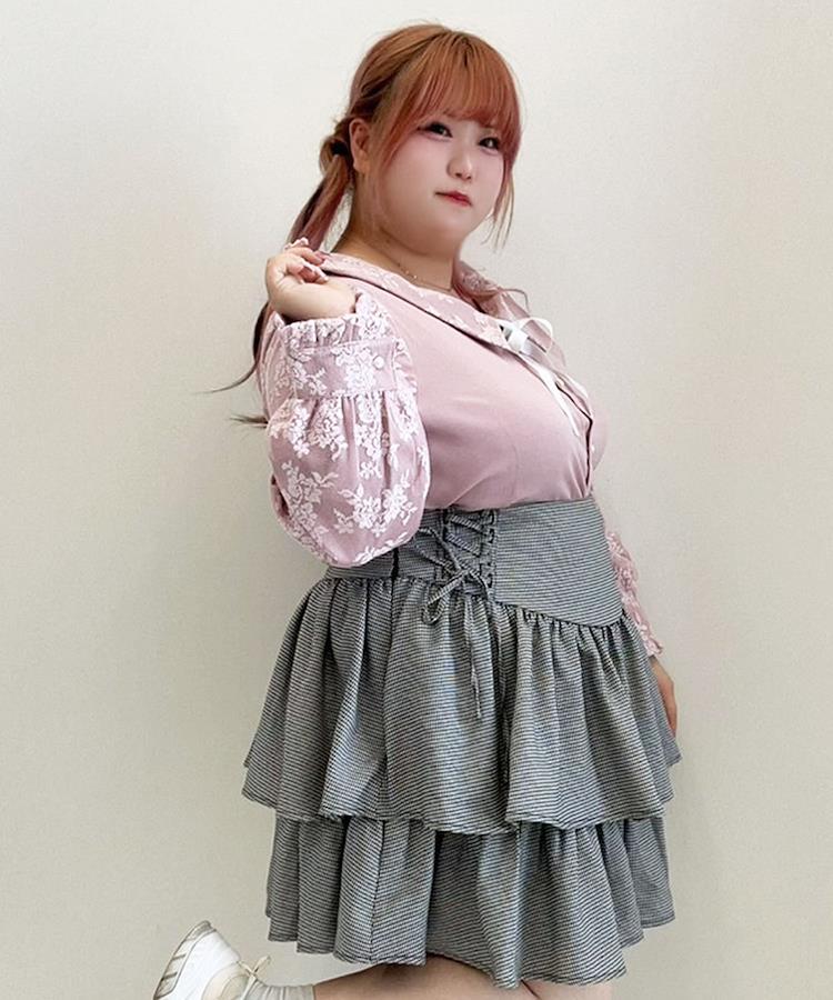 襟と袖に重なったレースがポイントのブラウスです。