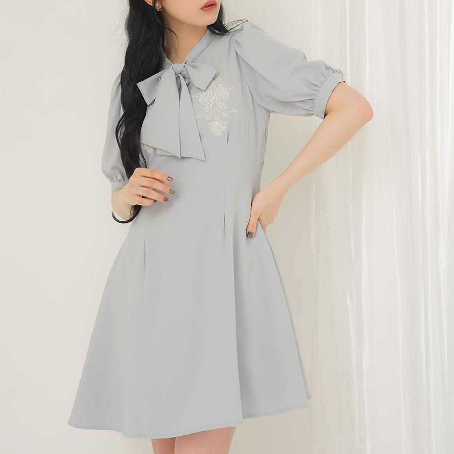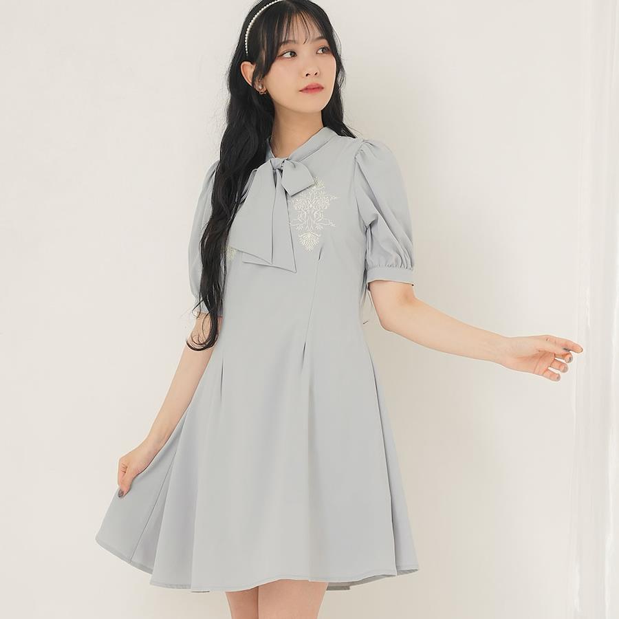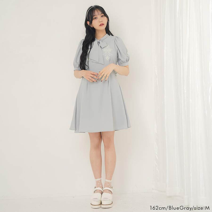 胸元のさりげない刺繍はシンプルながらも存在感が◎