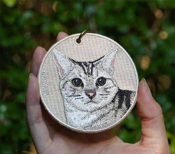 毛並みや息遣いを感じるほどのリアルな刺繍。