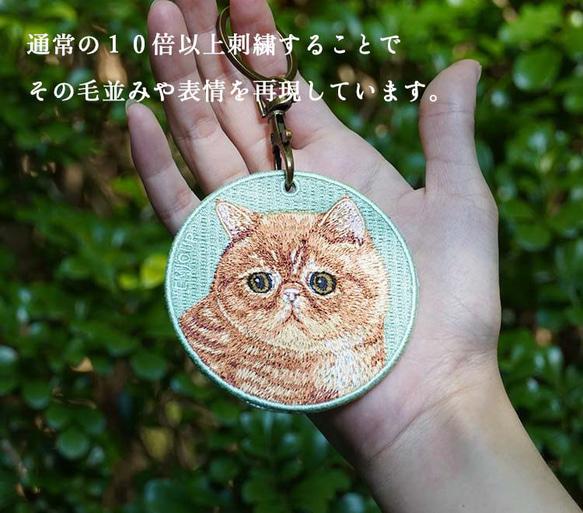 毛並みや息遣いを感じるほどのリアルな刺繍。