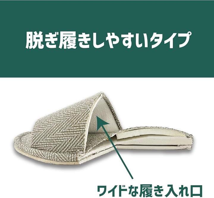 脱ぎ履きしやすいタイプで、ワイドな履き入れ口なので履きやすさが心地よいルームスリッパ。