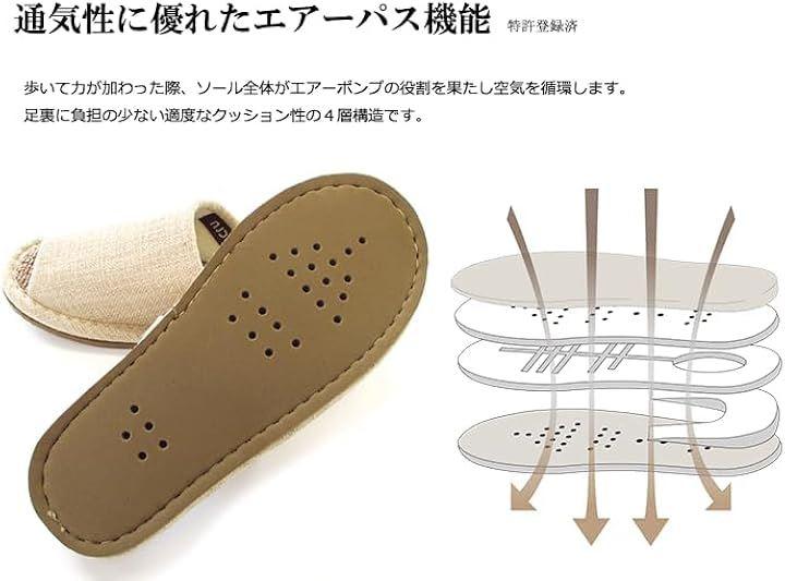 スリッパの底には3ヶ所の穴があいていて、力が加わると空気が抜けて程よい履き心地に。