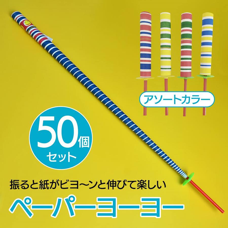 振ると紙がビヨ?ンと伸びる、縁日の定番のオモチャです。 カラフルなボーダー柄のアソートセットです。 たっぷり50個入りなのでイベントやお祭りの景品やオマケなどに最適です。 持ち手には伸縮時に紙が手に当たらずにご利用いただけるようツバが付いています。 【仕様】サイズ: 全長19cm(収縮時) / 材質:紙 / セット数:50個入り ※モニターの環境等により、色の見え方に若干差が生じる場合がございます。※アソートセットとなるため、色柄はお選びいただけません。あらかじめご了承ください。 ENN LLCは、当社オリジナルパッケージにてお送りし、30日の返品保証で安心して購入いただけます。