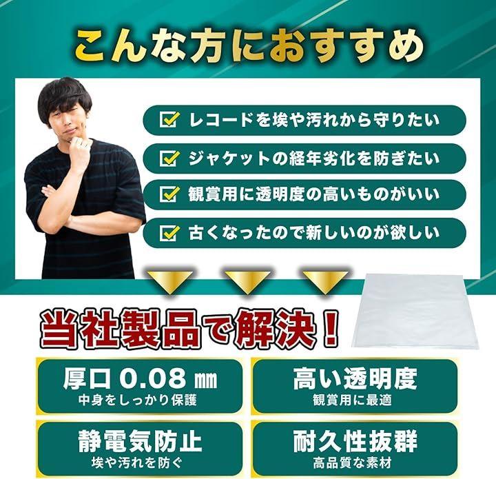 「ポイント1」レコードを傷や汚れから守りたい ・ジャケットを経年劣化から防ぎたい ・今のスリーブを入れ替えたい ・鑑賞用に透明度の高い袋が欲しいなどのお悩みの方に最適です。