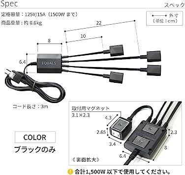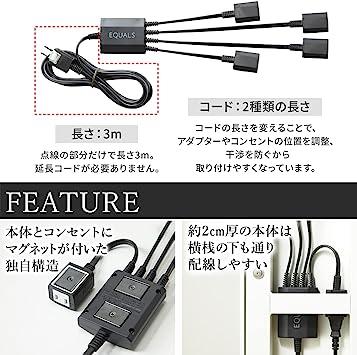 EQUALS イコールズ WALL テレビスタンド 全タイプ対応 スマート電源タップ コンセントタップ マグネット付き コード3m